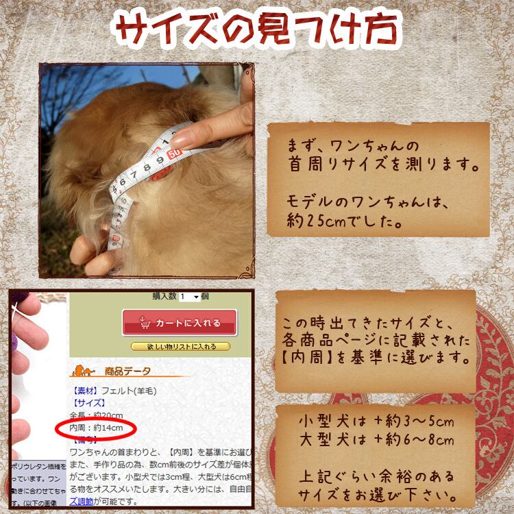 ワンちゃんの首まわりと、【内周】を基準にお選び下さい。